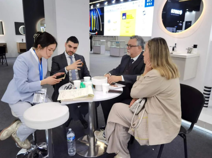 對于疫情之后的首屆國際性展會,歐路莎衛(wèi)浴董事長林華友格外重視,親自帶隊與副總經(jīng)理林子翔、國際外貿(mào)部總監(jiān)張霄、王進(jìn)等一同前往展會現(xiàn)場。