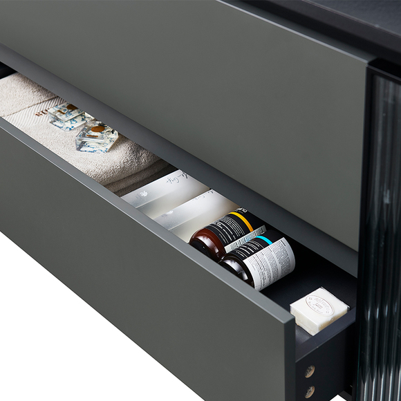 開門材質選用長虹玻璃,若隱若現富有朦朧之美,提高藝術享受的同時,使分區收納的便捷性更為突出。
