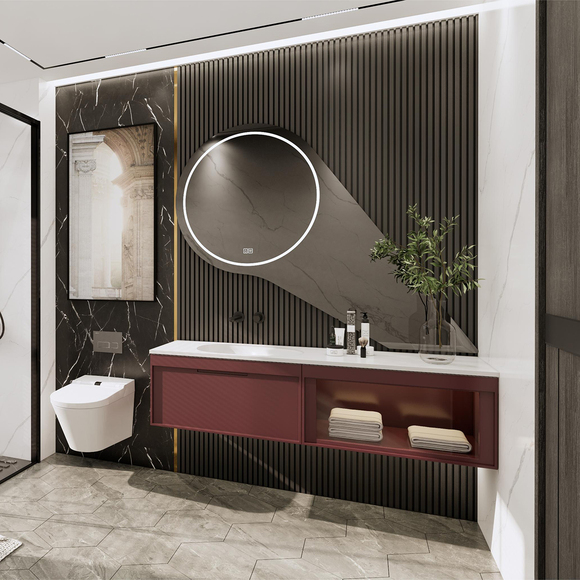 極簡造型 盡顯品質 極窄邊框抽面設計,隱藏式拉手,茶色玻璃抽面,膚感全啞烤漆,LED燈帶盡顯高級。